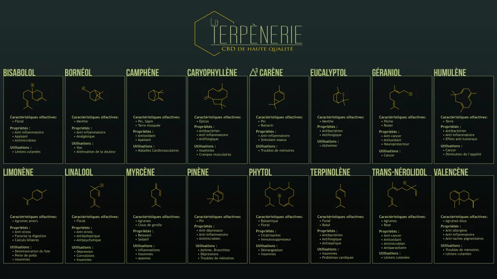 A faibles doses (inférieures à 0,x %) comme dans nos produits, son action psychotrope est négligeable mais il est très utile pour que le CBD fonctionne bien (voir l’article sur l’effet entourage).
