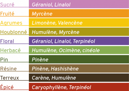 Cela vous permettra, au moment de l’achat, de savoir quel type d’arôme aura telle variété de fleurs CBD, de résine ou de concentrés.